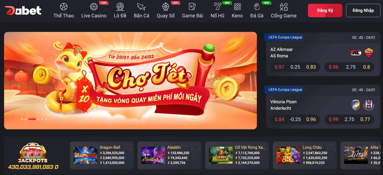 DABET là một cái tên quen thuộc trong giới cá cược nổ hũ đổi thưởng trực tuyến, nổi tiếng là một nhà cái nổ hũ uy tín và chất lượng hàng đầu khu vực Châu Á. Sở hữu giấy phép hoạt động hợp pháp, cùng hệ thống bảo mật tối tân, nền tảng xin cam kết mang đến cho người chơi một sân chơi an toàn, minh bạch, công bằng.