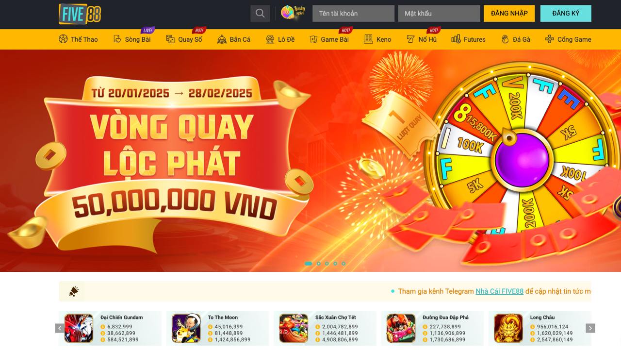 Ra mắt từ năm 2010 và xuất hiện tại Việt Nam vào 2013, FIVE88 thu hút sự quan tâm mạnh mẽ nhờ dòng game nổ hũ đa dạng, chất lượng cao, đáp ứng nhu cầu giải trí của người dùng. Một số sảnh game nổi bật được đông đảo người chơi yêu thích gồm: Xổ số, Thể thao, Nổ hũ, Bắn cá, Game bài, Casino – tạo nên không gian giải trí đầy đủ và hấp dẫn.